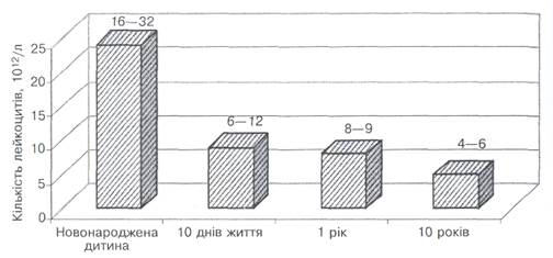Мал. 25. Кількість лейкоцитів залежно від віку дитини