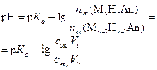 I. Буферный раствор приготовлен из V 1 мл c эк, 1 н. раствора вещества А и V 2 мл c эк, 2 н. раствора вещества В. 1. Определение рН этого буферного раствора