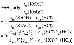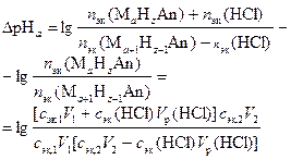 3. Расчет изменений водородного показателя Δ рН, вызванных прибавлением к этому раствору 5 мл 0, 1 н. раствора а) HCl; б) NaOH