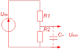 На рис. 2.3 представлено найпростіший резистивний двохплечий подільник напруги. Головна його характеристика - коефіцієнт ділення.