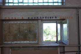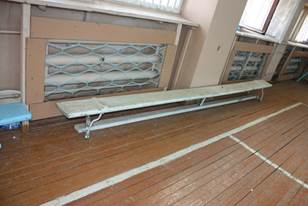 Спортивный зал находится над столовой. Деревянный пол зала в удручающем состоянии, гимнастические лавки не поддаются ремонту, для занятий физической культурой катастрофически не хватает элементарного спортивного инвентаря (матов, мячей; зимой на улице нужны лыжи).