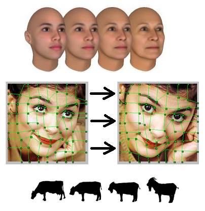 Морфинг - это технология, создающая видимость плавного перехода из одного объекта в другой. Существует несколько видов морфинга. Афинные преобразования позволяют деформировать изображение вместе с сеткой из треугольных сегментов. При этом так же плавно проводится изменение цветов пикселей изображения. Каждый пиксель плавно проходит путь от цвета пикселя исходного изображения до цвета пикселя результирующего изображения.