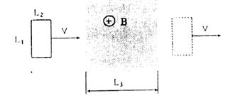 Рис. к зад. 9. Рис. к зад. 10. 10. Контур состоит из участка OA полукольца AC и стержня OD сопротивлением R длины L, который может скользить по полукольцу, вращаясь вокруг его центра – точки O. Сопротивления остальных участков контура и скользящего контакта пренебрежимо малы. Контур помещен в однородном магнитном поле с индукцией B, линии которой перпендикулярны плоскости контура (см. рис.). Найдите модуль минимальной силы F, которую надо приложить к стержню на расстоянии ⅓ L от точки O, чтобы вращать его с постоянной угловой скоростью w. (2006) 11. Прямоугольную рамку, сделанную из проволоки сопротивлением R = 1 Ом, перемещают с постоянной скоростью v = 10 м/с через область однородного магнитного поля с индукцией B = 0, 5 Тл (см. рис.). Какое количество теплоты Q выделится в рамке, если L1 = 0, 10 м, L2 = 0, 05 м и L3 > L2? (2006).