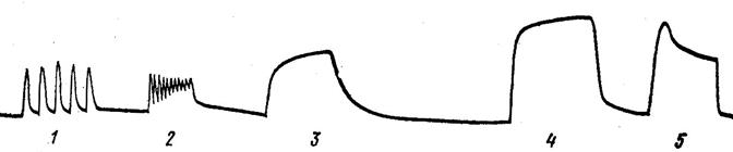 Рис. Типы мышечных сокращений 1 – одиночные мышечные сокращения 2 – зубчатый тетанус