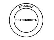 Центральное положение этой книги гласит, что именно Христос полностью удовлетворяет наши потребности. Говоря другими словами, Он может заполнить пространство внутреннего кружка на рисунке. Но Он никогда не обещал, однако, заполнить внешний кружок – «желание» (а все наши страдания из-за отсутствия теплоты, доброты, признания, уважения и верности со стороны наших супругов находятся в этом втором кружке). Похоже, мы чувствуем себя важными и значимыми, когда эти желания исполняются, но Господь не обещал нам, что Он дарует нам исполнение этих желаний. Когда эти желания остаются неисполненными, мы чувствуем сильную и вполне обоснованную боль Бог выбрал наших супругов в качестве Своих специальных инструментов, чтобы помочь нам испытывать более полно чью-то любовь к себе и ощущать свою значимость. Когда наши потребности удовлетворяются – мы безопасны и значимы. Когда удовлетворяются наши желания – мы чувствуем безопасность и значимость Когда наши желания не удовлетворяются, мы огорчаемся. Но поскольку наши потребности исполняются во Христе независимо от того, чувствуем мы это или нет, можно решиться последовать цели служения нашим супругам, хотя им и не удается исполнять наши желания. А сейчас я дам определение терминов, используемых мною. Цель, по моему определению, – это наше осознанное стремление, для реализации которого я готов совершить какие-то определенные действия. Исходя из этого определения, служение супругу – это цель, для достижения которой у христианина гораздо больше шансов, чем у других людей. Христианин полностью безопасен и значим во Христе, независимо от того, чувствует он это или нет, и он способен действовать, исходя из своей полноты. Он способен давать, поскольку у него есть что отдать. Чувство безопасности и значимости у неверующего не имеет подобного источника, и то, что он дает, не имеет истинного основания, поэтому он не может следовать цели служения в той форме, которая угодна Богу. Желание — это вполне законное стремление, но оно не может быть достигнуто только одними моими усилиями. Чтобы исполнить желание, необходимо сотрудничество с другим человеком. Например, когда мы хотим, чтобы наши мужья вели себя более разумно по отношению к детям, то это вполне законное желание, но незаконная цель. Хотя жена может попытаться оказать влияние на мужа, чтобы тот более ласково относился к детям, у нее нет, однако, возможности изменить мужа. Она может, вероятно, изменить ситуацию и сделать ее более благоприятной, но она не может заставить мужа вести себя по-другому. Поставить перед собой цель изменить мужа – значит превысить свои полномочия. Прежде всего, следует подумать не о том, как в результате должно измениться поведение мужа, а о том, как он отнесется к вашему стремлению изменить его. Другими словами, эта цель на всю жизнь должны стать лишь предметом желания. Наши действия во многом зависят от того, рассматриваем ли мы наше стремление как цель или как желание. Допустим, я хочу, чтобы завтра пошел дождь. Поскольку погода находится не в моей власти, мое стремление является желанием. Поэтому я не буду утруждать себя бессмысленными усилиями, пытаясь вызвать дождь. Мы никогда не должны брать на себя ответственность за исполнение наших желаний. Все, что мы можем сделать, – это помолиться, чтобы Тот, Кто ведает всем, позв