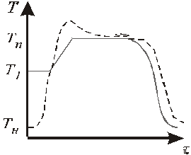 Листы (в т.ч. и фольгированные медью для печатных плат в радиоэлектронике), плиты, трубы, фасонные изделия из текстолита, гетинакса, стеклотекстолита, а также декоративные бумажно-слоистые пластики, древесные плиты и древесно-слоистые пластики получают на этажных прессах нижнего давления (рис. 3.15). Получение данных изделий состоит из операций раскроя пропитанного связующим листового материала (препрега), набора пакетов и их прессования. Набранный пакет укладывают между полированными листами из нержавеющей стали и загружают между обогреваемыми плитами этажного пресса (рис. 3.47). Особенности процесса прессования слоистых пластиков определяются реологическими свойствами связующего. На начальной стадии связующее плавится и происходит более глубокая пропитка основы пластика (ткани, бумаги, шпона). При этом давление дается небольшое, чтобы связующее не вытекало из пакета. С увеличением продолжительности прессования связующее отверждается, вязкость его нарастает и уплотнение пакетов ведут уже при максимальном давлении. Режим подъема давления связан с температурным режимом прессования и толщиной пластика (рис. 3.48). После прессования слоистый пластик охлаждают в прессе под давлением, пропуская холодную воду внутри плит пресса. Охлаждение ведут до 20¸ 40 0С. Далее готовые пакеты выгружают из пресса и передают на обрезку кромок, контроль и упаковку.