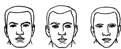а б в Особливості підборіддя: а-подвійне; б-роздвоєне; в-з поперечною борозною.