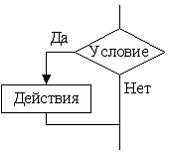 В приведенном фрагменте алгоритма условие y < 16? задает алгоритмическую конструкцию цикла с предусловием, а условие x < = y? – алгоритмическую конструкцию полного ветвления.