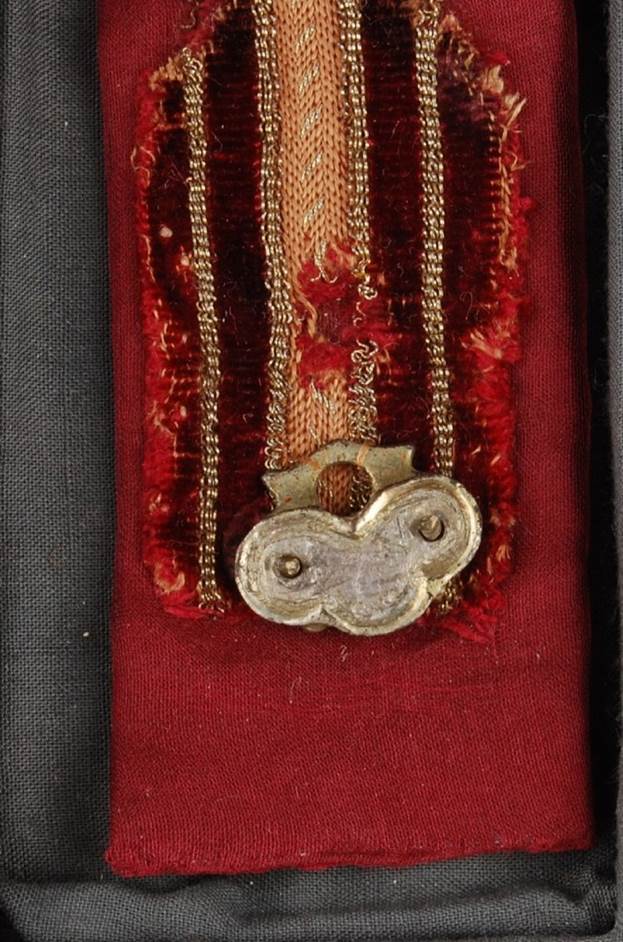 Отчетлива видна тканная основа. Греческий пояс 15 века. Section of belt; velvet with gilt-metal threads.