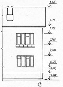 Рис. 12. Нанесение на чертеже отметок уровней элементов фасада здания
