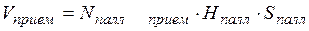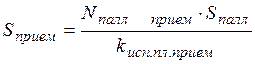 Для обеспечения непрерывности процесса в зоне целесообразно во время приемки партии товара производить разгрузку следующей партии. Для обеспечения выполнения работ по данной технологии емкость одного поста приемки должна позволять размещать единовременно товарный объем, равный двукратному объему товара в кузове автотранспорта. Таким образом, требуемая емкость и площадь поста приемки составит: