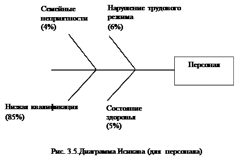 . Допустим, что статистические данные или экспертные оценки подтвердили, что наиболее вероятной зоной (90%) отказа (дефекта) является некачественная работа персонала (рис. 3.4). Естественно, что расследование на этом не может быть завершено, так как еще нет возможности принять конкретные меры по устранению дефектности [46]. Расследование должно быть продолжено в выявленной зоне. Строим новую диаграмму (рис. 3.5). В этой диаграмме наиболее вероятной зоной отказа является низкая квалификация работника. Но и здесь требуется выявить еще один уровень причинности среди следующих факторов: незнание должностной инструкции, низкий исходный уровень образования, высокая текучесть кадров, отсутствие системы повышения квалификации (рис. 3.6). При точном прогнозировании наиболее вероятных причин сроки выявления первопричины могут быть значительно сокращены.