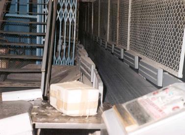 3 - Пульт управления; 4 - Стартовый стол; Рисунок 10.4 - Линия подачи посылок на пульт управления УСП-К Исполнительная система гидромеханического типа состоит из питающего конвейера 5 (рисунок 10.2), стартового стола, распределительного ленточного конвейера 1 с приводной и натяжной станциями, сбрасывателя грузов (шлюзовых дверок) 3, накопителей 2 и силовой насосной станции 7.