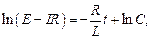 Из этой общей формулы можно получить зависимость силы тока от времени при замыкании цепи. В этом случае начальный ток равен нулю