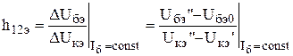 с ОБ: с ОЭ: Коэффициенты обратной связи по напряжению h12э для обеих схем включения БТ имеют очень малую величину, поэтому при определении h- параметров точность вычисления некоторых параметров с использованием статических ВАХ оказывается низкой. В связи с этим при расчете параметров эквивалентной схемы целесообразно использовать выражение для легко определяемого сопротивления эмиттерного перехода