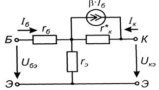 Рис.4.13. Эквивалентная схема БТ в схеме включения с ОЭ