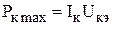 где fгр - граничная частота в МГц; tк = r’бСк - постоянная времени цепи обратной связи, определяющая устойчивость усилительного каскада к самовозбуждению; r’б - распределенное омическое сопротивление базовой области; Ск - емкость коллекторного перехода. Максимально допустимые параметры БТ. Для обеспечения надежной работы аппаратуры режимы работы транзисторов должны выбираться таким образом, чтобы ток и напряжение не выходили за пределы области допустимых режимов, которая определяется следующими параметрами: максимально допустимый постоянный ток коллектора