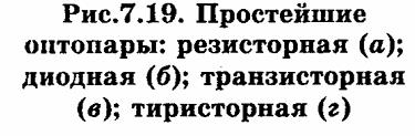 Рис.8.18. Виды оптопар: резисторная (а), диодная (б), транзисторная (в), тиристорная(г),