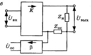 а) б) Рис 13.2 Структурная схема усилителя с цепью обратной связи а) по напряжению, б) по току.