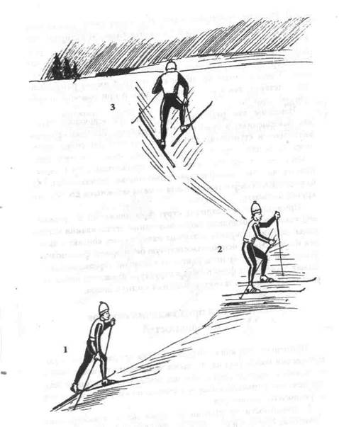 На подъемах лыжник попадает под дополнительное по сравнению с равнинными участками воздействие сил, которые тормозят движение. Специфичным внешним условиям удовлетворяют следующие способы подъемов: - попеременным двухшажным классическим способом, -одновременными и попеременным двухшажным коньковыми ходами; -подъем «елочкой» (это и нижеследующие названия способов связаны с внешним сходством рисунка, оставляемого лыжами на снегу); -подъем «полуелочкой»; -подъем «лесенкой». В классическом стиле попеременный двухшажный ход является основным способом преодоления подъемов. С увеличением крутизны подъемов в структуре движений сокращается, вплоть до полного исключения, скольжение на лыжах; усиливается опора на палки. Лыжники-любители на подъемах около 10 процентов зачастую переходят на так называемый ступающий шаг, при котором скольжение вообще отсутствует, выполняются характерные для обычной ходьбы движения. Подъемы коньковыми ходами используют лыжники разного уровня подготовленности. Оптимальность применения обеспечивает ширина подъема около 3 м и хорошо укатанное снежное полотно. В соревнованиях, проводимых классическим стилем, подъемы коньковыми ходами запрещены. При свободном стиле на подъемах разной крутизны используют полуконьковый, одновременные двухшажный и одношажный коньковые ходы, а также попеременный ход. Подъем «полуелочкой» выполняют ступающим шагом с характерным для этого движения разноименным сочетанием работы рук и ног. Лыжи располагаются, одна - по направлению движения, а другая - под углом, величина которого находится в прямой зависимости от крутизны подъема'. «Полуелочкой» лыжник преодолевает подъем чаще всего в условиях, когда сцепление лыж со снегом не позволяет идти на параллельных лыжах. Подъем «лесенкой» не применяется в спортивно-соревновательных условиях. Это единственно возможный способ преодоления очень крутых (более 30 процентов) подъемов, которые нехарактерны для соревновательных трасс, но нередки на прогулочно-туристических лыжных маршрутах, в лыжных походах, переходах, экспедициях. «Лесенка» - наиболее доступный способ преодоления коротких невысоких подъемов для детей и начинающих, физически слабо подготовленных лыжников. При подъеме «лесенкой» встают к склону боком. Чтобы исключить соскальзывание, нужно упираться в склон верхними кантами лыж. Из такого исходного положения передвигаются вверх по склону приставными шагами Подъем «елочкой» обеспечивает надежное сцепление лыж со снегом и полноценное отталкивание и ногами, и руками. Его используют на более крутых подъемах - более 15 процентов. В подъеме «елочкой» полностью отсутствует скольжение лыж. Носки лыж разводят в стороны под углом от 30 до 70 градусов, в зависимости от крутизны склона.Для более надежного сцепления со снегом лыжи закантовывают на внутренние ребра. Палки на опору ставят обязательно сзади лыж. В каждом шаге толчки ногой и рукой имеют разноименное сочетание, при обычной ходьбе. Известны две разновидности подъемов «елочкой»: шаговая (замедленная) и прыжковая (ускоренная).