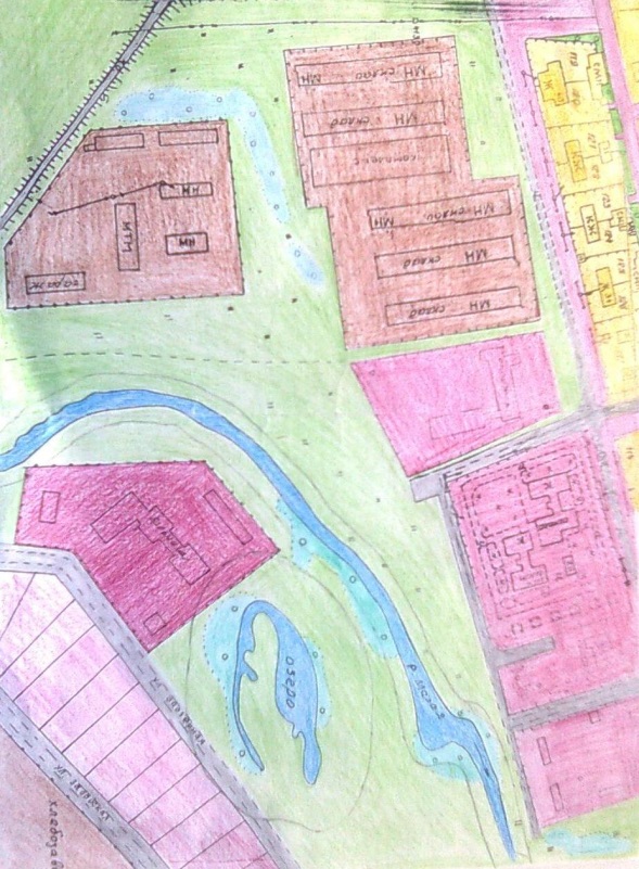 На данном фрагменте карты видно, что есть зоны: жилая, общественно-деловая, производственная, рекреационная, инженерная и транспортная инфраструктура.