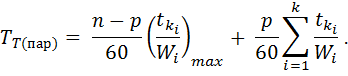 Из рис. 4 следует, что в общем случае на всех операциях, кроме максимальной по продолжительности, работа осуществляется с перерывами. Длительность технологического цикла в часах при параллельном виде движения равна