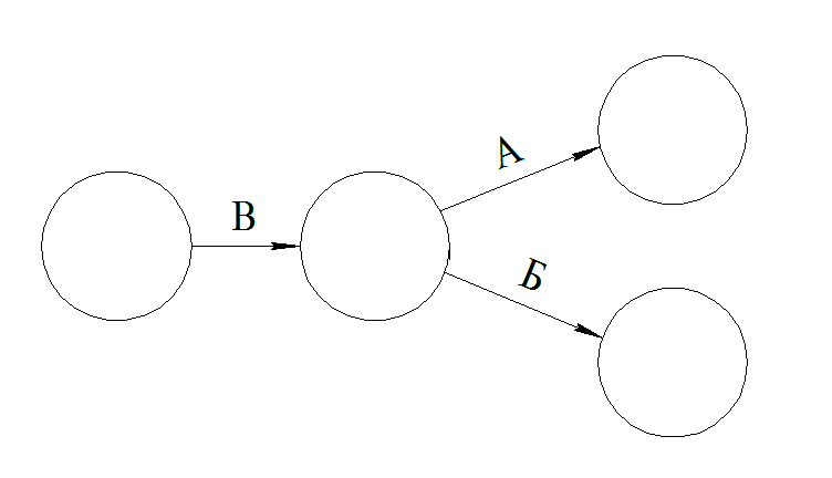 2. Если для выполнения работ А и Б необходим результат работы В, то на графике это изображается следующим образом: