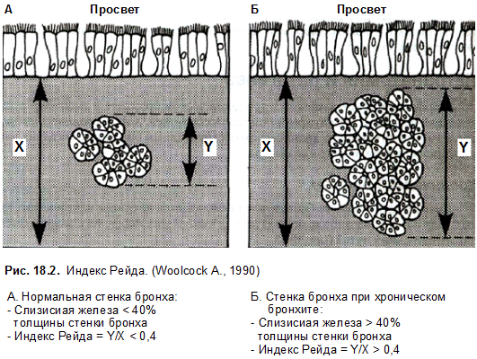 Обструкция нижних дыхательных путей наблюдается при бронхо- и бронхиолоспазме, спадении мелких бронхов, утративших эластичность, сужении просвета бронхиол вследствие отечно-воспалительных изменений, обтурации бронхиол патологическим содержимым (кровью, экссудатом), компрессии бронхиол в условиях повышенного внутригрудного давления (при кашле). При обструкции нижних дыхательных путей для осуществления полноценного выдоха необходимо участие дыхательных мышц, так как сила эластической тяги легких недостаточна для изгнания воздуха из альвеол. Давление и бронхиальное сопротивление на выдохе более выражено, чем на вдохе, характерно удлинение выдоха по сравнению с вдохом (экспираторная одышка).