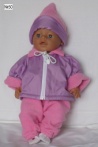 | Курточка на разъёмной молнии, с рукавом «реглан», штанишки-брючками и шапочка с узелком.