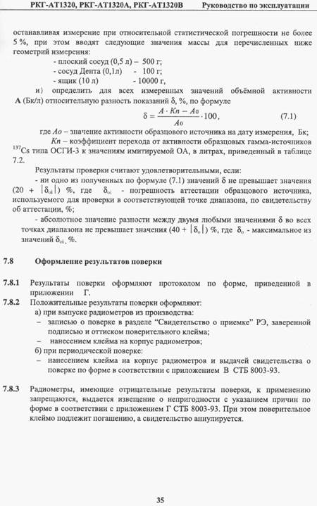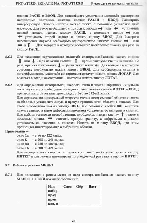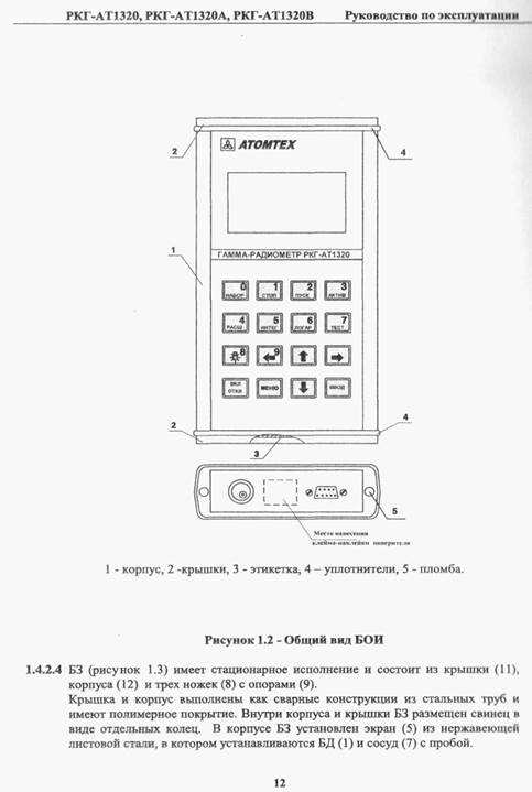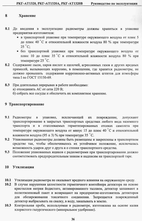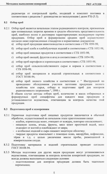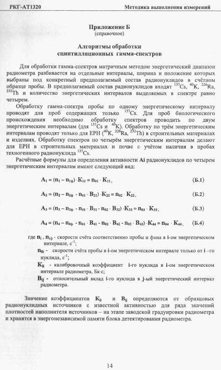 Описание и работа радиометров 1.1 Назначение 1.1.1 Гамма - радиометры РКГ-АТ1320, РКГ-АТ1320А, РКГ-АТ1320В (далее -радиометры) относятся к стационарным средствам измерения спектрометрического типа и могут использоваться для радиоэкологического мониторинга объектов окружающей среды и контроля качества продукции в лабораториях радиационного контроля предприятий агропромышленного комплекса, лесного хозяйства, медицинских учреждений, строительных организаций и службами радиационной безопасности других министерств и ведомств. В качестве детектора гамма-излучения используется сцинтилляционный блок детектирования с кристаллом Nal (T1) 0 63 х 63 мм. 1.1.2 Радиометры предназначены для измерения объемной и удельной активности гамма-излучающих радионуклидов в воде, продуктах питания, кормах, почве,