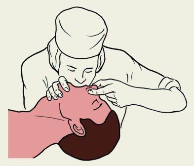 Рис. 2.3. Искусственная вентиляция легких по способу изо рта в рот
