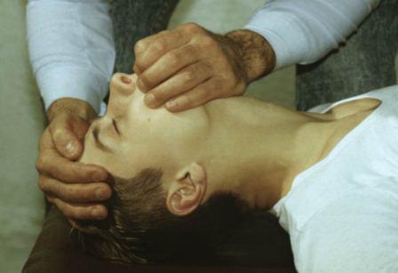 Рис. 2.1. Положение головы пострадавшего при проведении искусственной вентиляции легких по способу изо рта в рот или изо рта в нос