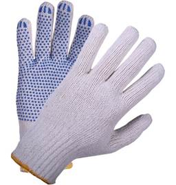 | Перчатки х/б 7, 5-8 класс эконом белые c ПВХ