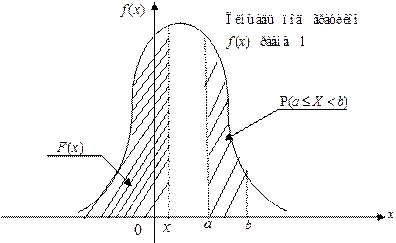 и все вероятности определяются с помощью интеграла (2.6). Графическая иллюстрация функции распределения и плотности вероятностей непрерывной случайной величины.
