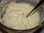Размягченное сливочное масло взбиваем с сахаром до пышности. По одному добавляем яйца, вмешиваем ванильный сахар.