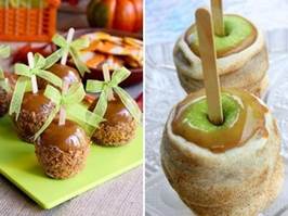 Понадобится: Берем наши яблочки, хорошо их помоем, затем очистим от кожуры. Сбрызнем яблоки лимонным соком, чтобы они не потемнели. Теперь приготовим карамель: Вставляем в сердцевину яблок палочки и осторожно окунаем их в карамель, после чего макаем тут же в приготовленные украшения: для этого размельчим орехи, шоколад, или приготовим просто цветную посыпку. Тут уж полагаемся на Вашу фантазию и изобретательность! Остается только подсушить карамель – для этого мы можем разложить яблоки на бумаге для выпечки или фольге, либо взять стаканы или кружки и положить яблоки в них. Оставляем яблоки на пару часов в холодильнике, после чего можно порадовать своих близким оригинальным и вкусным десертом. Приятного аппетита!