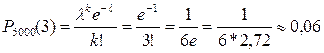 Пример 5. Завод отправил на базу 5000 доброкачественных изделий. Вероятность того, что в пути изделие повредится, равно 0, 0002. Найти вероятность того, что на базу прибудут 3 негодных изделия. Решение. По условию, n = 5000, р = 0, 0002, k=3. Найдем λ λ = пр = 5000*0, 0002 = 1. По формуле Пуассона искомая вероятность приближенно равна