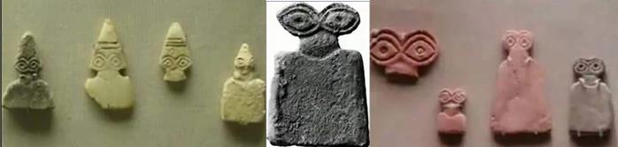 Ануннаки были не одни здесь. Меньшие существа были документально зафиксированы во всём мире. В Месопотамии, они были известны как ИГИГИ. Кто такие Игиги не знает никто. Об них нет никаких письменных источников, но именно они хорошо задокументированны почти на всех континентах во всех древних цивилизациях. Посмотрим на них, точнее на небольшие иконки, известные как «Глаза идола», которые говорят сами за себя: