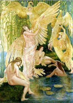 А в России Лебедя называли – Ирий (вирий, вырий) – в восточнославянской мифологии южные края, куда птицы улетают зимой, сказочная страна. В соответствии с мифами, на этом острове живут прародители всех птиц и зверей (перед названием зверя, обитавшего на этом острове, говорили «старший» или «старый», это говорило о их зрелости и телесной мощи). Этот остров Седьмого неба, крышей которому служили Восьмое и Девятое небеса, также называли «Ирий» или «Вирий». Напомним для справки: Яхве обитает на Седьмом Небе и выше подняться не может. НеБо – по-славя́ нски, место, где НЕт БОга, а выше идут НеБеса, это где Нет Беса. Ирий, Вырий, Сварга, Беловодье – место, где собираются и пируют славянские боги, аналог рая в славянской мифологии. Правит Ирием Сварог. По Ирию из вымени небесной коровы Земун течёт молочная река (что дало Ирию название Беловодье). Ирий-сад, (Вырий, Вирий) ДРЕВНЕЕ название рая у восточных славян. Светлое небесное царство находится по ту сторону облаков, а может быть, это тёплая страна, лежащая далеко на востоке, у самого моря, - там вечное лето, и это - солнцева страна. Там растёт мировое древо (наши предки полагали, что это береза или дуб), у вершины которого обитали птицы или души умерших. Ключи от Ирия были некогда у вороны, но та прогневила богов, и ключи передали ласточке. В ведической традиции легендарный Ирий - это Солнце, место, куда уходят наши предки. По славянской языческой мифологии с огнём и дымом погребального костра душа поднимается в славянский рай - Ирий. По свидетельству народных легенд, в Ирии, у колодцев, находятся места, приуготовленные для будущей жизни хороших, добрых людей. Это студенцы с чистой ключевой водою, при которых растут благоухающие цветы, зреют на деревьях молодильные яблоки и сладко поют райские птицы. Праведных ожидает в Ирии такое несказанное блаженство, что время для них перестанет существовать. Целый год пролетит как единый неуловимый миг. А долгие триста лет покажутся всего-навсего тремя короткими, счастливыми, сладостными минутами... В славянской мифологии лебедь относится к почитаемым, " святым" птицам. В северной Руси лебедь ставится выше других птиц, о чём свидетельствует, например, сказочный сюжет о выборе царя птиц, которым становится белый лебедь (а не орёл, как в других традициях). Красота этой птицы породила множество легенд про Дев - лебедей. Они владеют тайной напитка бессмертия: сказочная Белая Лебедь - обладательница живой воды и молодильных яблок. В греко-римской традиции образ Лебедя связан с Зевсом, Афродитой, Аполлоном, Орфеем. Правда, связан то не так… Зевс превратился в Лебедя, чтобы ОБМАНОМ овладеть прекрасной девой Ледой. Зевс здесь поступил как последний ПОДЛЕЦ! Тем более что мы уже знаем, что Зевс – это греческий вариант еврейского Яхве, и что другого от него можно было вообще ожидать. Лебедь присутствовал при рождении Аполлона, Солнечного бога; с ним связана сила пророчества.