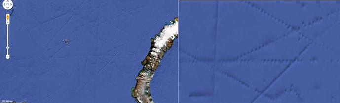 В режиме спутник посмотрите на Баренцево море. Поиграйте с масштабами и посмотрите на размеры " дорожек". -71.565599; -77.389527 вставьте в https://maps.google.com/ и включите 20 км масштаб. Кто там дырочек диаметром по 2 км под водой наковырял? Для чего? Аналогично: -72.079659; -152.492066 в 20 км масштабе полюбуйтесь на подводные " хайвеи" длиной по несколько сотен километров и шириной 3-4 км (!!!). Такое построить покруче будет, чем пирамиды. Около Африки, чуть западнее «дорожки» по 500 км длиной. И пройдите по 80 градусу северной широты. Кто у Земли " крышку" надрезал как у арбуза?
