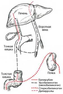 Это клетки ретикульярно-эпителилаьной системы. Каждая поглощает до нескольких десятков эритроцитов. В основном это происходит из-за их старения. Как известно — красные кровяные тельца «живут» не более 120− 140 дней. Макрофаг, поглотив эритроцит, начинает переваривание. Под действие протеолитических ферментов мембрана красных телец очень быстро растворяется и расщепляется. Гемоглобин свободно поступает в пищеварительную вакуоль макрофага. Здесь под действием гидролаз и оксидаз он распадается на гем и глобиновые цепи аминокислот. Последние практически сразу метаболизируются до аминокислот, которые посредством цитоплазматического транспорта выводятся из вакуоли. Гем же трансформируется в билирубин. Это и есть чистое вещество. Его принято называть непрямой билирубин: норма его в крови не превышает 0, 4 микромоль на лит. После чего этот желчный пигмент выводить из макрофагов. Но тут же связывается альбуминами. При их помощи он и доставляется до гепатоцитов, где происходит следующий этап превращений. Только очень малая часть данного пигмента в виде связи с альбуминами может циркулировать по организму. Это объясняет небольшие показатели нормы при исследовании крови. Печень Непрямой билирубин, попадая в гепатоцит подвергается конъюгации. Так называется реакция связывания с глюкуроновой кислотой. Это делает его водорастворимым. Что означает не возможность проникать через липидные мембраны. Таким образом, клетки печени нейтрализуют билирубин, путем перевода его из токсичной фракции в нетоксичную.