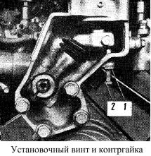 — вверните задний установочный винт 5 до контакта с рычагом, после этого доверните его еще на '/.4 оборота и застопорите контргайкой 4;