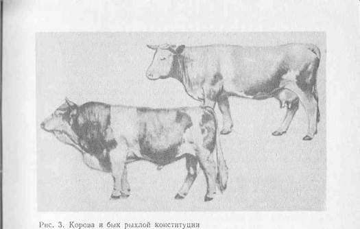 знаки могут иметь крайнюю степень выраженности. В этих случаях различают нежный и грубый переразвитые типы конституции. С типами конституции животных тесно связаны типы нервной деятельности. И. П. Павлов описал 4 типа нервной деятельности, взяв за основу силу возбудительного и тормозного процессов: сильный уравновешенный быстрый; сильный уравновешенный медленный; сильный неуравновешенный безудержный и слабый типы.