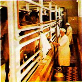 Доение кобыл аппаратами ДДА-2 на установке «Цепочка»