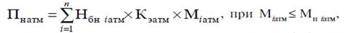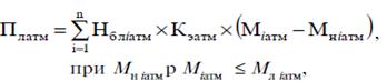 где Платм – плата за выбросы загрязняющих веществ в пределах установленных лимитов, руб./год; Mлiатм – временно согласованный выброс i-го загрязняющего вещества, т/год; Нблiатм — базовый норматив платы за выброс 1 т. i-го загрязняющего вещества в пределах установленных лимитов выбросов, руб./т.