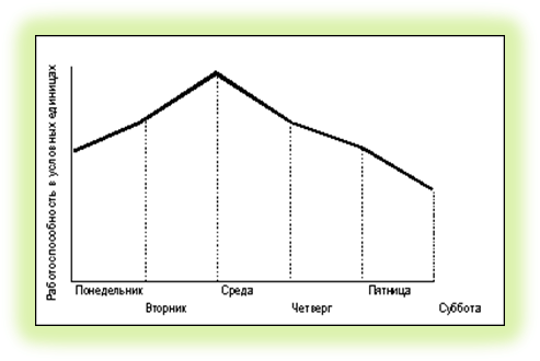 Рис.4. Колебания уровня работоспособности в течение суток и недели