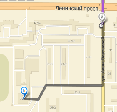Выходите из троллейбуса, не переходя дорогу, идете вдоль дома 21 к.1, в конце дома сворачиваете направо во двор. Идете прямо вдоль до 23 к.1, в конце дороги перед собой увидите здание школы. Вы на месте. (карта №4)