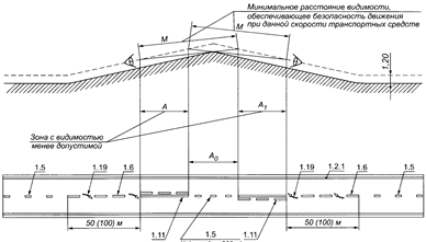 Пример нанесения разметки 1.18 Разметка 1.19 Применение разметки 1.19 в сочетании с разметкой 1.6 – о приближении к разметке 1.1 или 1.11, разделяющей потоки транспортных средств противоположных направлений, при ограниченной видимости встречного автомобиля. При этом последовательно наносятся две (три) или более стрел с расстояниями между ними 15, 30, 45 метров и т.д. (30, 60, 90 метров и т.д.).