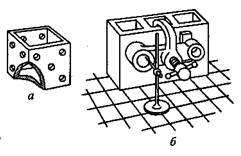 Рисунок 10 – Регулируемая призма Угольники с полкой применяют как для плоскостной, так и для пространственной разметки. При плоскостной разметке угольники используют для проведения рисок, параллельных одной из сторон заготовки (если эта сторона предварительно обработана), и для нанесения рисок в вертикальной плоскости. Во втором случае полку разметочного угольника устанавливают на разметочной плите. При пространственной разметке угольник используют для выверки положения деталей в разметочном приспособлении в вертикальной плоскости. В этом случае также применяют разметочный угольник с полкой. Разметочные ящики (рисунок 11) применяют для установки на них при разметке заготовок сложной формы. Они представляют собой пустотелый параллелепипед с выполненными на его поверхностях отверстиями для закрепления заготовок. При больших размерах разметочных ящиков с целью увеличения жесткости конструкции во внутренней их полости выполняют перегородки.