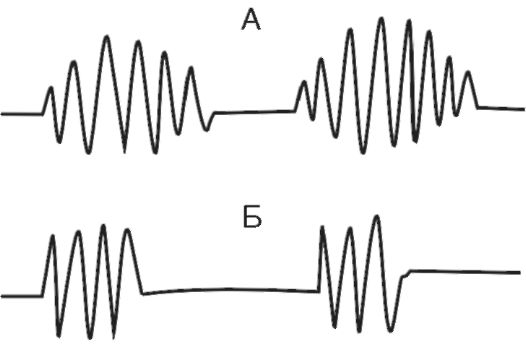 ного центра. Оно может возникать при органических поражениях головного мозга - травмах, инсультах, опухолях, воспалительных процессах, при ацидозе, диабетической и уремической комах, при эндогенных и экзогенных интоксикациях. Возможен переход в терминальные типы дыхания. Иногда периодическое дыхание наблюдается у детей и людей старческого возраста во время сна. В этих случаях нормальное дыхание легко восстанавливается при пробуждении. В основе патогенеза периодического дыхания лежит снижение возбудимости дыхательного центра (или другими словами - повышение порога возбудимости дыхательного центра). Предполагают, что на фоне пониженной возбудимости дыхательный центр не реагирует на нормальную концентрацию углекислого газа в крови. Для возбуждения дыхательного центра требуется большая его концентрация. Время накопления этого раздражителя до пороговой дозы определяет длительность паузы (апноэ). Дыхательные движения создают вентиляцию легких, СО2 вымывается из крови, и дыхательные движения вновь замирают. Терминальные типы дыхания. К ним относятся дыхание Куссмауля (большое дыхание), апнейстическое дыхание и гаспингдыхание. Есть основания предполагать существование определенной последовательности фатального нарушения дыхания до его полной остановки: сначала возбуждение (дыхание Куссмауля), апнейзис, гаспинг-дыхание, паралич дыхательного центра. При успешных реанимационных мероприятиях возможно обратное развитие нарушений дыхания до его полного восстановления. Дыхание Куссмауля - большое, шумное, глубокое дыхание («дыхание загнанного зверя»), характерное для пациентов с нарушением сознания при диабетической, уремической комах, при отравлении метиловым спиртом. Дыхание Куссмауля возникает в результате нарушения возбудимости дыхательного центра на фоне гипоксии мозга, ацидоза, токсических явлений. Глубокие шумные вдохи с участием основной и вспомогательной дыхательной мускулатуры сменяются активным форсированным выдохом. Апнейстическое дыхание (рис. 16-5) характеризуется продолжительным вдохом и изредка прерывающимся, форсированным коротким выдохом. Длительность вдохов многократно превышает продолжительность выдохов. Развивается при поражении пневмотаксического комплекса (передозировка барбитуратов, травмы головного мозга, инфаркт моста мозга). Такой вид дыхательных